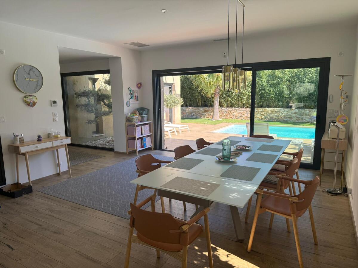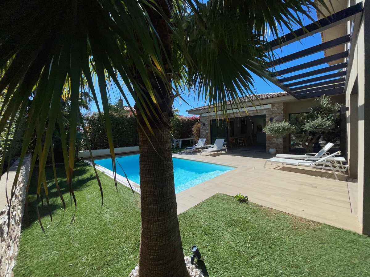 Sanary sur mer, dans un quartier recherché, résidentiel et calme, belle maison contemporaine récente sur un terrain paysagé avec piscine chauffée, couverte et grand garage. De plain pied vous trouverez une entrée, une cuisine moderne équipée et aménagée donnant sur la pièce de vie : surface 63.50 m², une suite parentale avec SdE, WC et dressing, 1 buanderie, 1 WC. Un accès intérieur au garage. Terrasses.